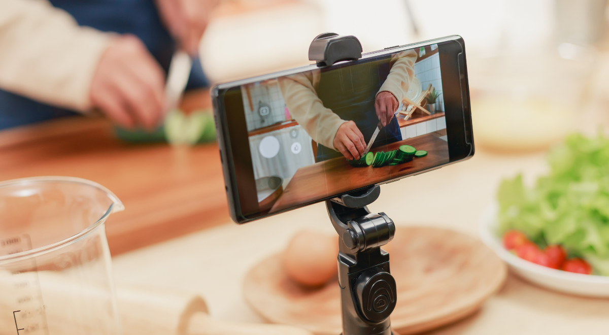 Attach your phone to a phone holder with a clamp and flexible neck so you can move it as needed to show work in progress.