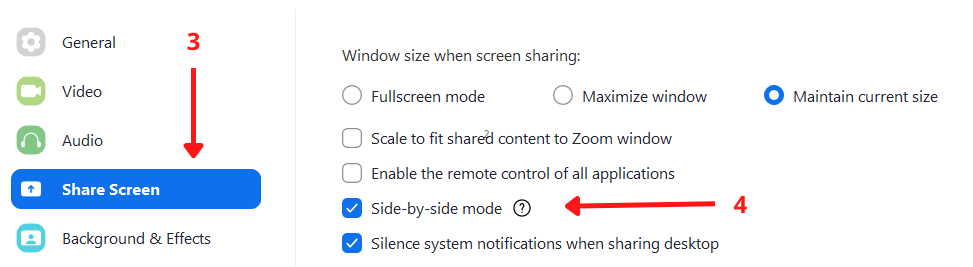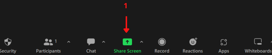 - Select the “Share Screen” option at the bottom of the Zoom window (not the up arrow next to it).