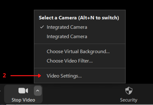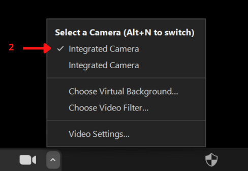 2. When you choose this arrow, you should see both cameras under “Select a Camera.” Select either your computer camera or the second one you set up.